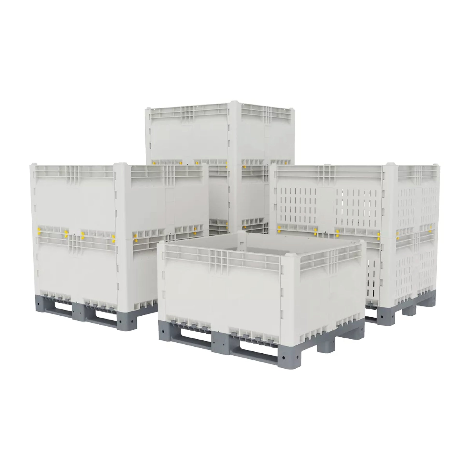The Dolav KitBin is a flexible, heavy-duty bulk container designed for operations that need strength, hygiene, and modular height adjustability. Built from structural-foam HDPE, the KitBin features four removable sidewalls that lock securely into place and can be stacked to create single or double-height configurations. When disassembled, up to four KitBins nest into the footprint of one—reducing storage volume by up to 63% and improving transport efficiency. Smooth interior walls ensure hygienic handling, making it ideal for food, agriculture, waste, and industrial applications.